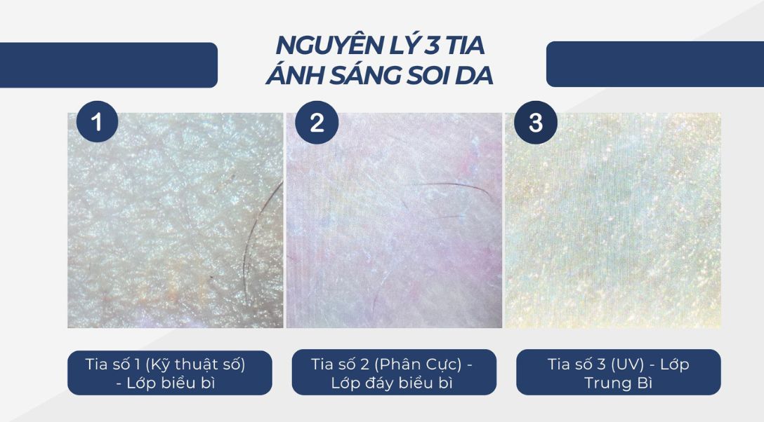 1. Tia kỹ thuật số: Ở tia này chúng ta sẽ xem được Lớp biểu bì bên trong da gồm: