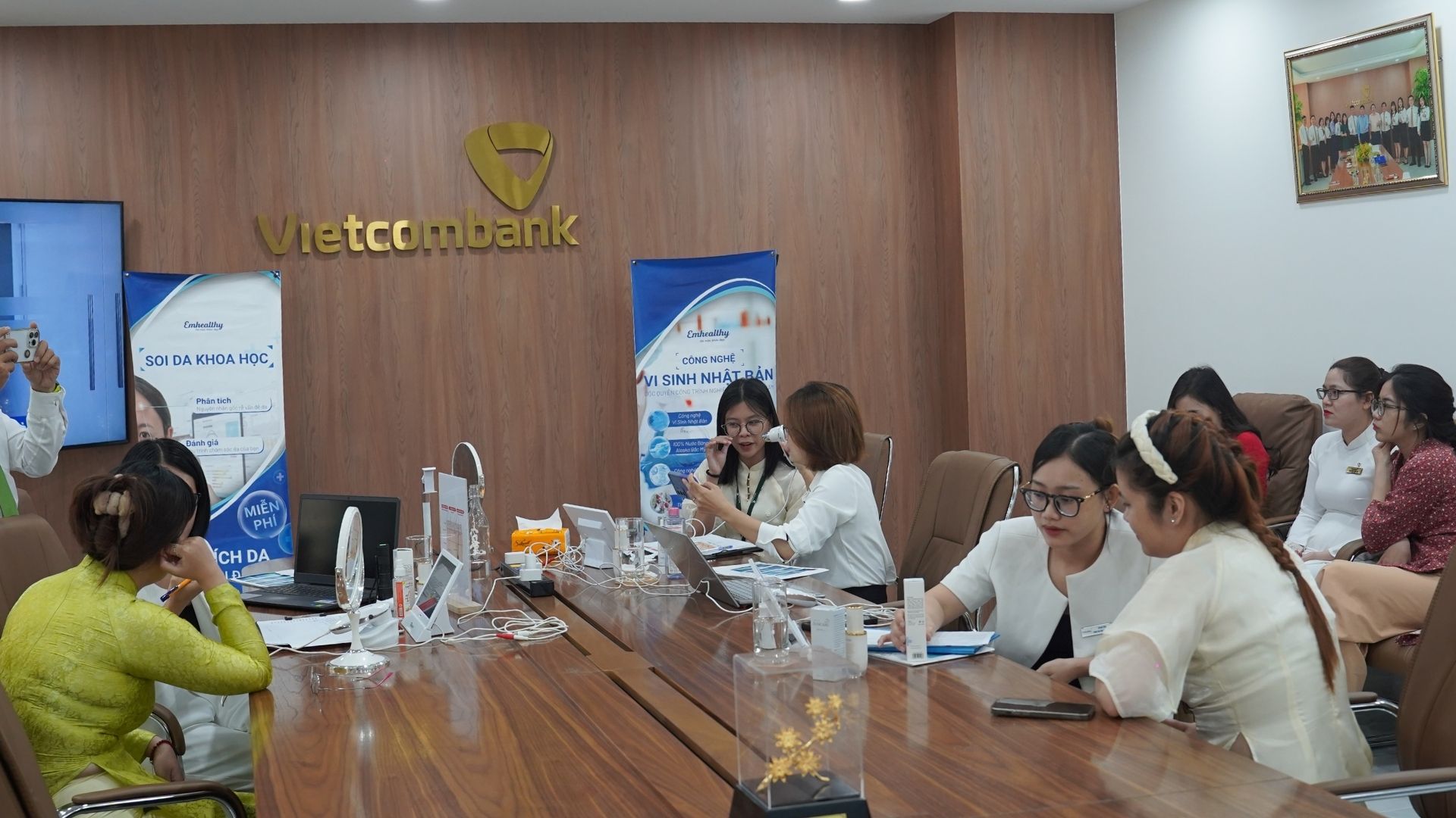 Chuyên viên Emhealthy đang cán bộ nhân viên tại Ngân hàng Vietcombank
